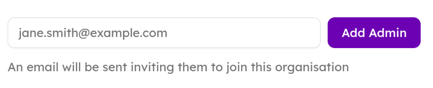 To add a new Admin, enter their email address in the box and click Add Admin: