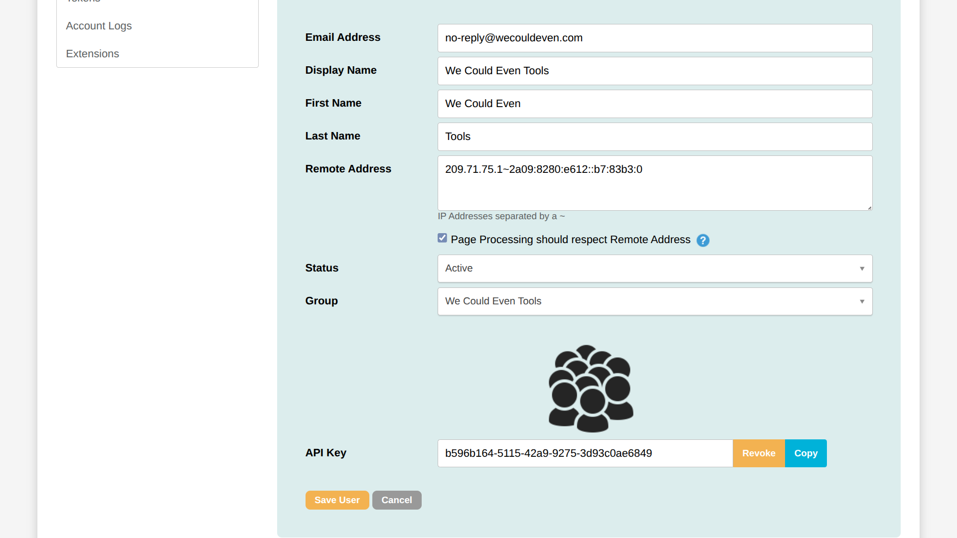In Engaging Networks, go to Account Settings > Permission Groups. Create a new group called 'We Could Even Tools'. Edit permissions for Page and click Grant all permissions. Save the group.