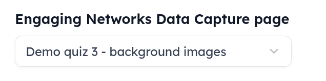 You will then need to do two things: choose the data capture page in your Engaging Networks account that quiz entries will be submitted to; and map the form fields you are using against your fields in Engaging Networks.