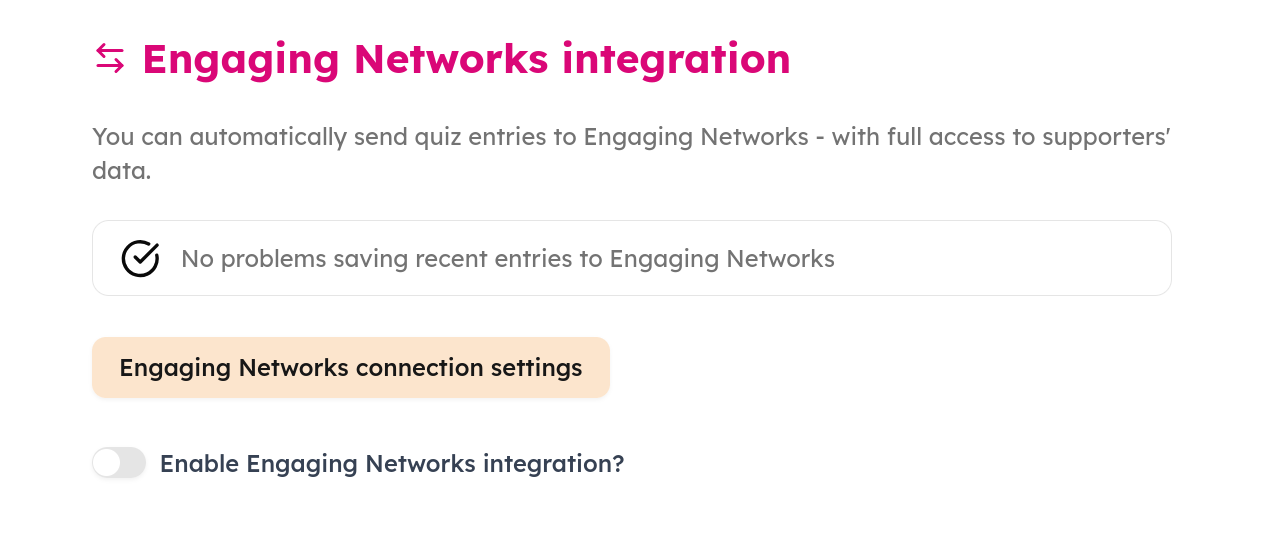 Click the toggle to Enable Engaging Networks integration.