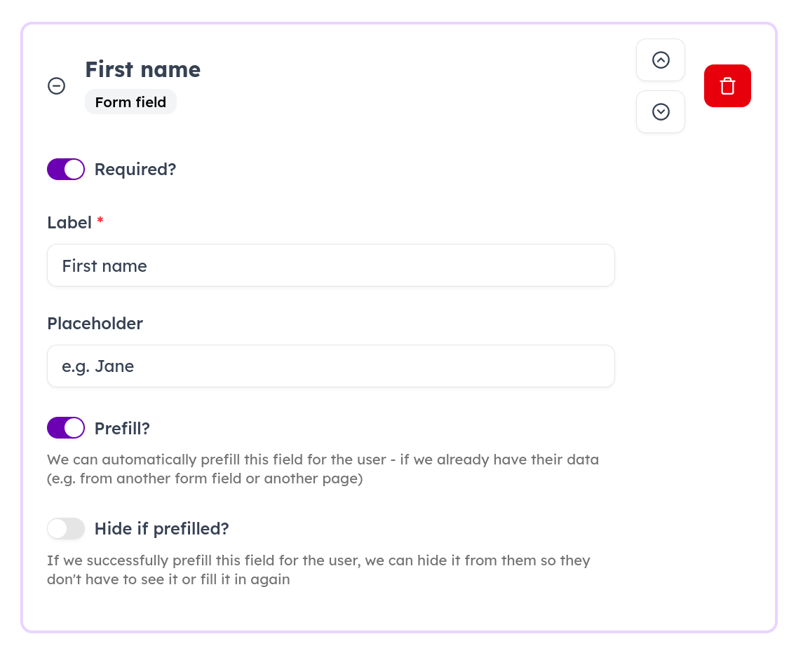 And you can choose to have a field prefill if that is an option, for example if they have already filled in another form in the same session or if they are coming to the quiz from an email you have sent.
